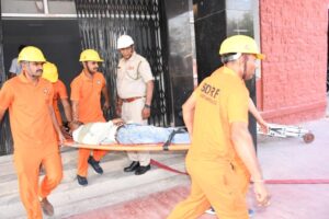 बारां। जिला कलेक्ट्रेट भवन पर गुरुवार शाम 6 बजे हवाई हमला हो जाने की सूचना से एकाएक हड़कंप मच गया। इस दौरान समूचा क्षेत्र सायरनों की आवाज से गूंज उठा। सूचना मिलने पर पहुंचे बचाव दलों व सुरक्षाबलों ने तत्काल मौके पर पहुंचकर धूएं के गुबार से भरे कलेक्ट्रेट भवन बचाव व राहत कार्य प्रारंभ किया। हमले में घायल 9 जनों को उपचार के लिए एम्बुलेंस से जिला अस्पताल भेजा गया।